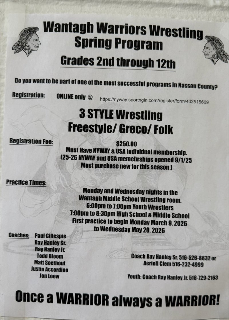 • Wantagh Wrestling Road Warriors Spring Clinic - March 0 - May 20, 2026